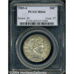 <table><tbody><tr><td><table> <TR><TD width="100%"><TABLE cellSpacing=1 cellPadding=3 width="100%" border=0><TBODY><TR><TD width="100%" bgColor=#79735c><FONT face=arial color=#ffffff size=3><B>Description</B> </FONT></TD></TR><TR><TD width="100%" bgColor=#ffffff><FONT face=arial size=2><B>1909-S 50C MS64 PCGS.</B></I> A scarce and all-too-often overlooked issue in the Barber half dollar series, especially in high grades. Natural gray-golden shades blanket both sides, with faint russet and purple mottling near the peripheries. Well struck with a few insignificant blemishes. Population: 10 in 64, 19 finer (12/03).<BR><I>From The Phillip Wertheimer Collection.</B></I> </FONT></TD></TR></TBODY></TABLE></TD></TR></TBODY></TABLE><BR><A name=PricesRealized></A><TABLE cellSpacing=0 cellPadding=0 width="100%" bgColor=#000000 border=0><TBODY><TR><TD width="100%"><TABLE cellSpacing=1 cellPadding=3 width="100%" border=0><TBODY><TR><TD width="100%" bgColor=#79735c><A name=PR><FONT face=arial color=#ffffff size=3><B>Previous Prices from Heritage Auctions</B> </FONT></A></TD></TR><TR><TD bgColor=#f6f6ed><TABLE cellSpacing=0 cellPadding=0 width="100%" border=1><TBODY><TR><TD align=middle width="33%"><B>Date</B></TD><TD align=middle width="33%"><B>Service</B></TD><TD align=middle width="33%"><B>Price</B></TD></TR><TR bgColor=whitesmoke><TD width="33%"><B>05/03/2003</B></TD><TD width="33%">PCGS</TD><TD width="33%">$2,185.00</TD></TR><TR bgColor=whitesmoke><TD width="33%"><B>11/15/2001</B></TD><TD width="33%">PCGS</TD><TD width="33%">$2,242.50</TD></TR><TR bgColor=whitesmoke><TD width="33%"><B>01/01/2000</B></TD><TD width="33%">NGC</TD><TD width="33%">$1,725.00</TD></TR></TBODY></TABLE></TD></TR><TR><TD bgColor=#ffffff><FONT face=arial size=1 ?>PLEASE NOTE: All prices realized reflect the final hammer price PLUS the buyer's premium in auctions that charge a buyer's premium. Each item has a notation at the top of the listing indicating whether that lot included a buyer's premium. Example: A item that sells with a final hammer price of $100 and a 20% buyer's premium will display with a price realized of $120. All information listed is intended to be as accurate as possible, but errors are possible. Please use this guide carefully and inform us of any inaccuracies. </FONT></TD></TR></TBODY></TABLE></TD></TR></TBODY></TABLE><BR><TABLE cellSpacing=0 cellPadding=0 width="100%" bgColor=#000000 border=0><TBODY><TR><TD width="100%"><TABLE cellSpacing=1 cellPadding=3 width="100%" border=0><TBODY><TR><TD width="100%" bgColor=#79735c colSpan=6><FONT face=arial color=#ffffff size=3><B>Price Guide*</B> </FONT></TD></TR><TR bgColor=#f6f6ed><TD align=middle><B>Grade</B> </TD><TD align=middle><B>Coin World<BR>(Trends)</B> </TD><TD align=middle><B>Numismedia<BR>Retail</B> </TD><TD align=middle><B>Numismedia<BR>Wholesale</B> </TD><TD align=middle><B>Coin<BR>Universe</B> </TD><TD align=middle><B>Heritage<BR>Value Index</B> </TD></TR><TR bgColor=#ffffff><TD align=middle>63</TD><TD align=right>$1,200.00</TD><TD align=right>---</TD><TD align=right>$960.00</TD><TD align=right>$1,250.00</TD><TD align=right>$841.67</TD></TR><TR style="FONT-WEIGHT: bold" bgColor=#cccfdd><TD align=middle>64</TD><TD align=right>$2,350.00</TD><TD align=right>---</TD><TD align=right>$1,725.00</TD><TD align=right>$2,425.00</TD><TD align=right>$1,676.41</TD></TR><TR bgColor=#ffffff><TD align=middle>65</TD><TD align=right>$3,900.00</TD><TD align=right>---</TD><TD align=right>$2,840.00</TD><TD align=right>$3,900.00</TD><TD align=right>$2,810.00</TD></TR><TR bgColor=#ffffff><TD colSpan=6><FONT size=1>*All information listed is intended to be as accurate as possible, but errors are possible. No item may be returned or refused based on this information which is provided as a service to our customers. You should contact each pricing source directly to determine the accuracy of this information. </FONT></TD></TR></TBODY></TABLE></TD></TR></TBODY></TABLE><BR><TABLE cellSpacing=0 cellPadding=0 width="100%" bgColor=#000000 border=0><TBODY><TR><TD width="100%"><TABLE cellSpacing=1 cellPadding=3 width="100%" border=0><TBODY><TR><TD width="100%" bgColor=#79735c><FONT face=arial color=#ffffff size=3><B>Population Guide</B> </FONT></TD></TR><TR bgColor=#ffffff><TD align=middle><!-- Begin Output of Population Grid--><TABLE cellSpacing=0 cellPadding=0 width="100%" border=0><TBODY><TR><TD vAlign=center><TABLE cellSpacing=0 width="100%" border=1 cellsadding="3"><TBODY><TR><TD vAlign=center><TABLE cellSpacing=0 cellPadding=3 width="100%" border=1><TBODY><TR><TD vAlign=center align=middle bgColor=#f0f1e8 colSpan=2 <CENTER><FONT face=Arial size=2><B>PCGS Pop </B></FONT><CENTER></CENTER></TD><TD vAlign=center align=middle bgColor=#f0f1e8 colSpan=2><CENTER><FONT face=Arial size=2><B>NGC Pop</B></CENTER></FONT></TD></TR><TR><TD vAlign=center><FONT face=Arial size=2>(64)</FONT> </TD><TD vAlign=center align=right><FONT face=Arial size=2>10</FONT> </TD><TD vAlign=center><FONT face=Arial size=2>(64)</FONT> </TD><TD vAlign=center align=right><FONT face=Arial size=2>7</FONT> </TD></TR><TR><TD vAlign=center><FONT face=Arial size=2>(>64)</FONT> </TD><TD vAlign=center align=right><FONT face=Arial size=2>19</FONT> </TD><TD vAlign=center><FONT face=Arial size=2>(>64)</FONT> </TD><TD vAlign=center align=right><FONT face=Arial size=2>10</FONT> </TD></TR></TBODY></TABLE></TD></TR></TBODY></TABLE></TD></TR></TBODY></TABLE><!-- End Output of Population Grid--></TD></TR></TBODY></TABLE></TD></TR></TBODY></TABLE><BR><TABLE cellSpacing=0 cellPadding=0 width="100%" bgColor=#000000 border=0><TBODY><TR> <font color='#000000'><span style='background-color: #FFFFFF'><td bgcolor='#FFFFFE'> Important notice: Heritage usually auctions material at the rate of 200-250 lots per hour. On some occasions eBay Live bid software or the Internet may not be able to keep up with the pace of the auction. We recommend placing a realistic absentee bid now as insurance to avoid disappointment. Occasionally the auctioneer