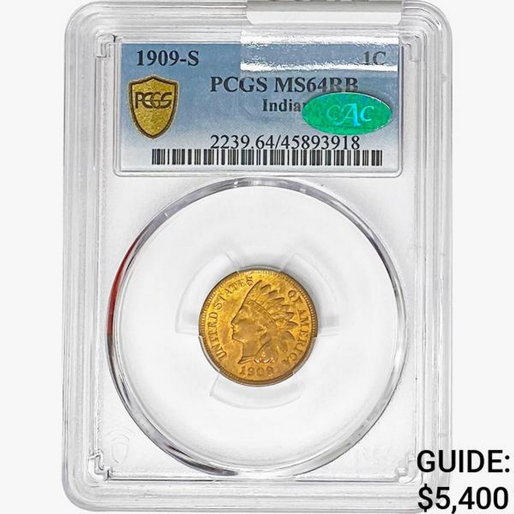 1909-S CAC Indian Head Cent PCGS MS64 RB