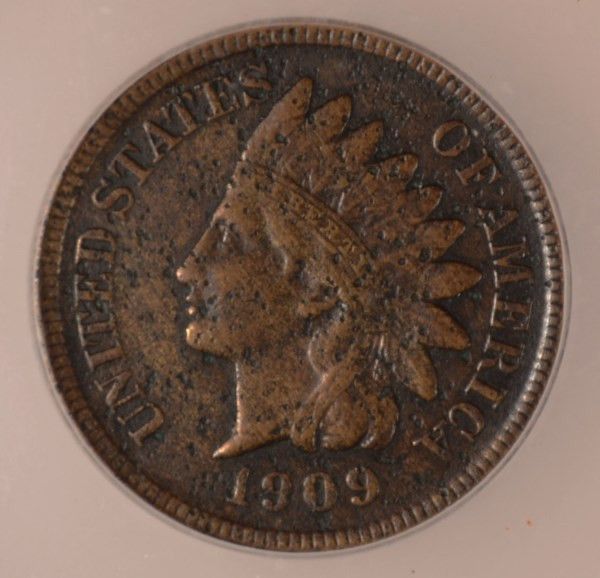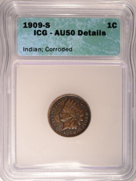 1909 S INDIAN CENT ICG AU50, HAS LIGHT CORROSION SPOTS!