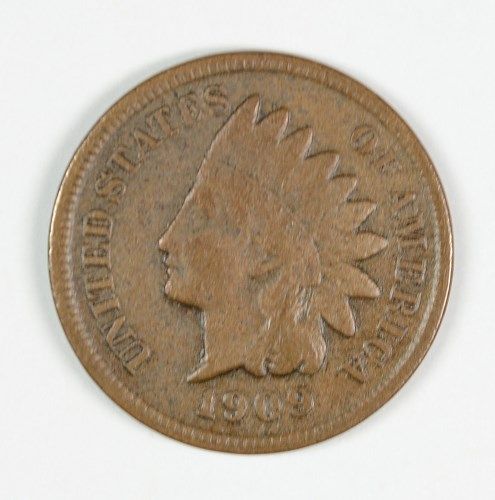 1909-S INDIAN HEAD CENT, FINE, KEY DATE COIN