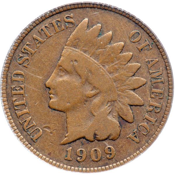 1909-S Indian Head Cent. PCGS graded VG-10. Nice even wear (PCGS # 2238) .