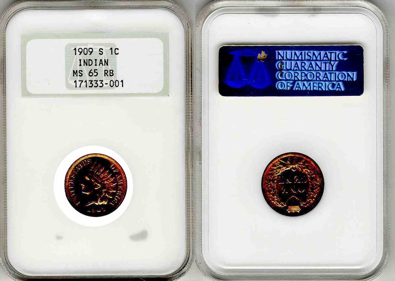 1909-S Indian Head 1c -- NGC Graded MS65 RB