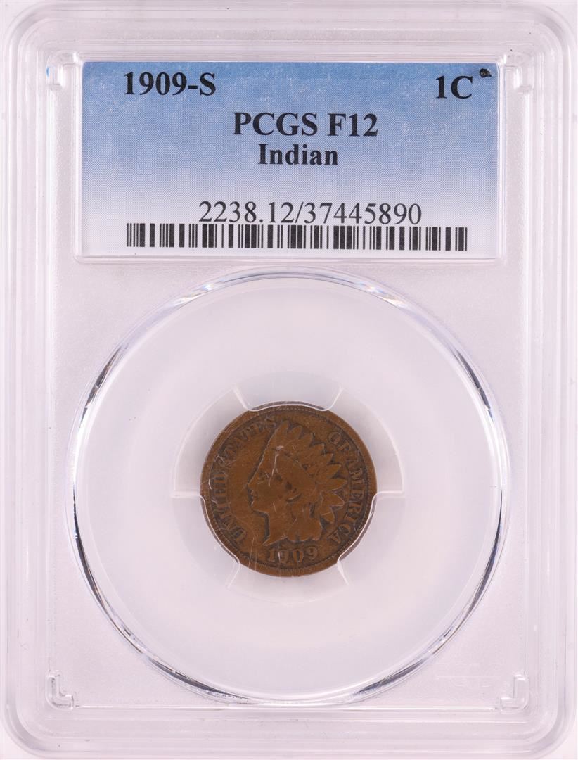 One 1909-S Indian Head Cent Coin PCGS F12. PCGS Graded.