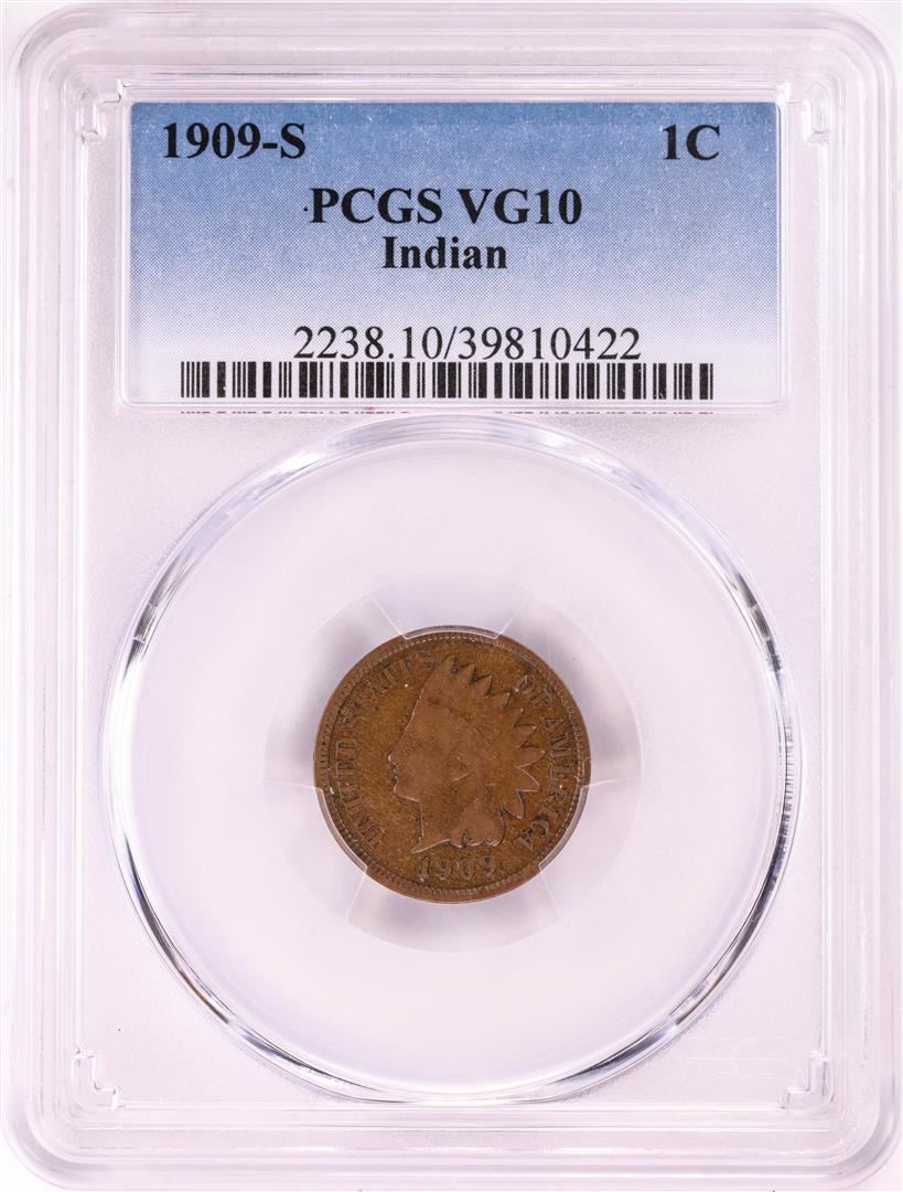 One 1909-S Indian Head Cent Coin PCGS VG10. PCGS Graded.