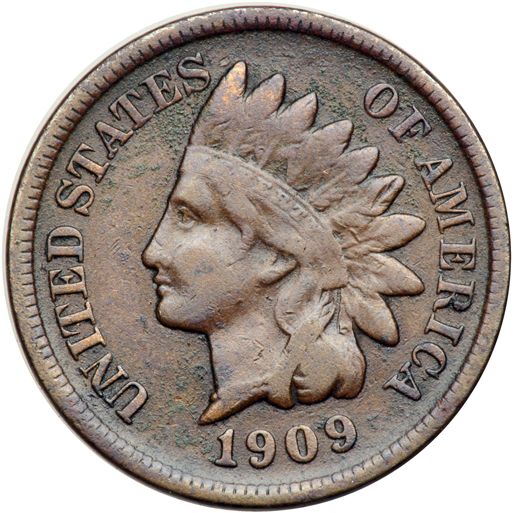 1909-S Indian. Our grade is Sharpness of VG8. Rough surfaces.