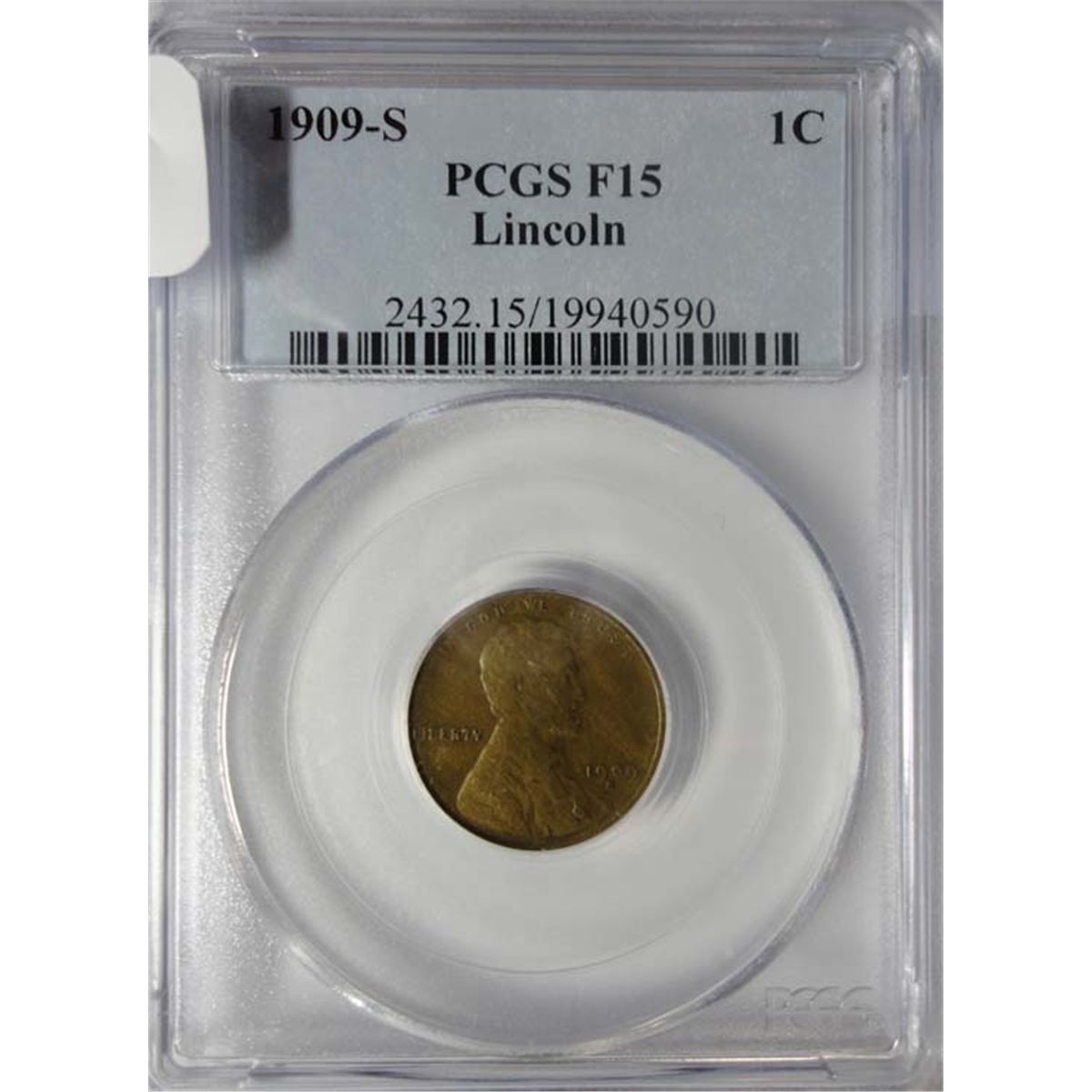 1909-S LINCOLN CENT PCGS F-VF 15