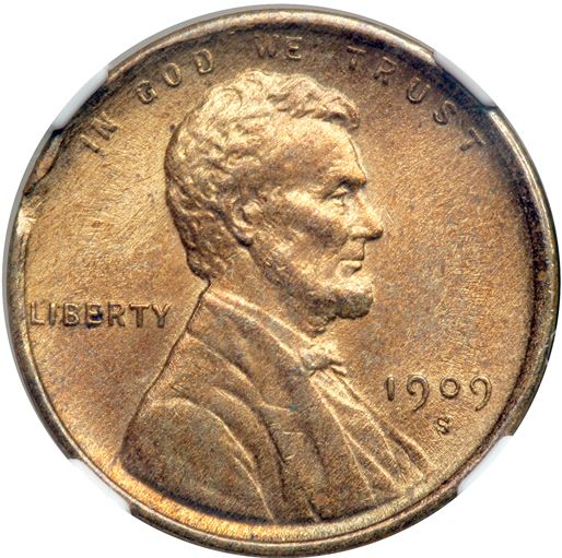 1909-S Lincoln Cent. S over horizontal S. NGC graded MS-62 Red & Brown.