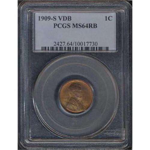 <b>1909-S Lincoln Cent. VDB. PCGS graded MS64 RB.</b> A fresh appearing Gem that has radiant copper, orange, and a tint of gold color. Razor-sharp on all devices <b>(PCGS # 2427)</b> <i>
