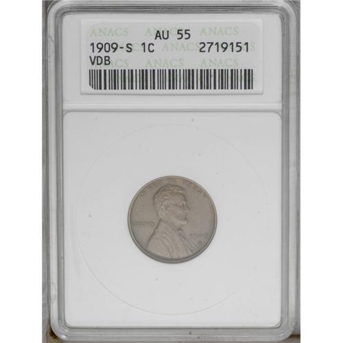 1909-S VDB 1C AU55 ANACS. The extremely smooth, deeply 1909-S VDB[1C] AU55 ANACS.