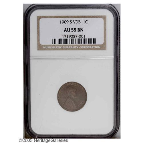1909-S VDB 1C AU55 NGC. The surfaces of this key date 1909-S VDB[1C] AU55 NGC.
