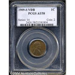<B>1909-S VDB<1C> AU58 PCGS.</B></I> A shimmering deep golden-brown example with a couple of tiny marks on Lincoln's coat and beard. A perennially popular key date Cent, which overshadows the even lower mintage 1909-S Indian Cent. <BR><BR><B>Important notice:</B> Heritage usually auctions material at the rate of 200-250 lots per hour. On some occasions eBay Live bid software or the Internet may not be able to keep up with the pace of the auction. We recommend placing a realistic absentee bid now as insurance to avoid disappointment. Occasionally the auctioneer may eliminate or reject an eBay Live bid, and the auctioneer may also reopen a lot after the close of the eBay live bidding (usually because we missed an audience bid), and may reject your bid even if it shows you as the winning bidder. By bidding via eBay Live, you agree that Heritage may award the lot to another bidder at its sole discretion under the circumstances described above or any other reasonable circumstances. Since eBay bids are not shown to us until we open the lot on the floor, we treat those bids just like floor bids. In most cases the floor responds before the eBay bid is presented to us, due to Internet lag time, so for consistency we have made it a policy that floor bids are always considered first over tie eBay live bids. Also please note that all Heritage lots purchased through eBay Live carry a 20% Buyer's Premium. Please make sure you read the Terms and Conditions before you bid. </span></font></tr></table></td></tr></table>