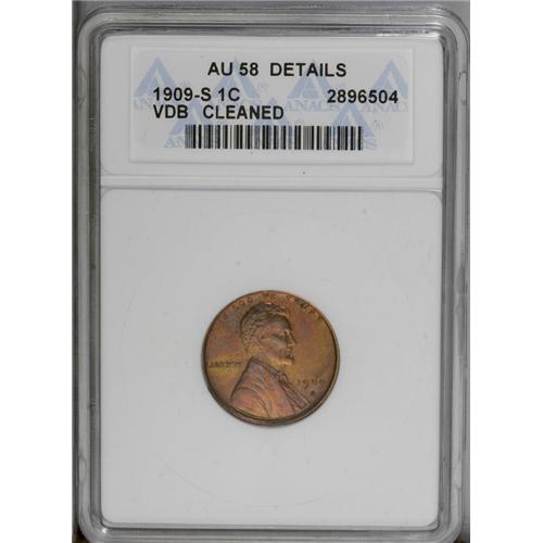 1909-S VDB 1C --Cleaned--ANACS. AU58 Details. Subdued u