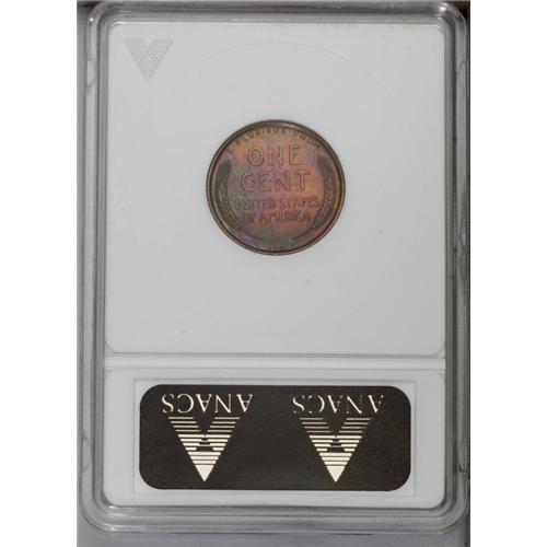 <B>1909-S VDB<1C>--Cleaned--ANACS. AU58 Details.</B></I> Subdued uniform reflectivity has replaced the natural luster. A trace of friction is noted on the pink, magenta-violet, and gold-orange surfaces.