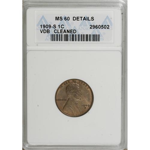 1909-S VDB 1C --Cleaned--ANACS. MS60 Details. A precise