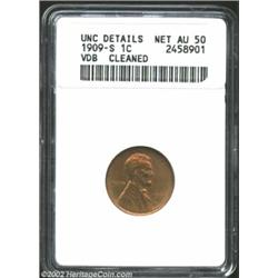 1909-S VDB 1C--Cleaned--ANACS. Unc Details, Net AU50. Aside from some slight flatness on Lincoln's cheek, this specimen possesses a warm rosy glow, and attractive appearance. Important notice: We expect to be auctioning lots at the rate of 200-250 per hour. Sometimes eBay Premier live bid software cannot keep up with that pace, so we strongly recommend that you place a realistic proxy bid now as insurance to avoid disappointment. Also please note that all Heritage/CAA lots purchased through eBay Premier carry a 20% Buyer's Premium. Please make sure you read the Terms and Conditions.