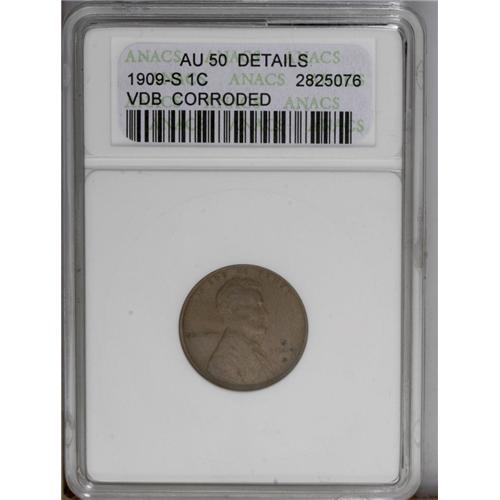 1909-S VDB 1C --Corroded--ANACS. AU50 Details. Well det 1909-S VDB[1C]--Corroded--ANACS. AU50 Detail
