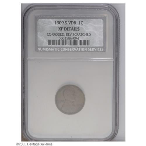 1909-S VDB 1C --Corroded, Reverse Scratched--NCS. XF De 1909-S VDB[1C]--Corroded, Reverse Scratched-