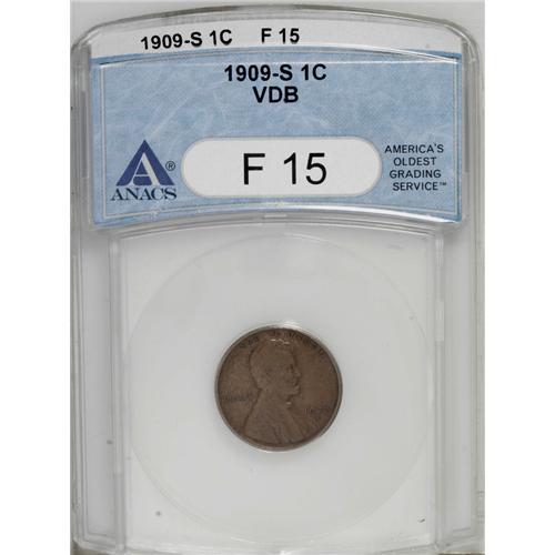 1909-S VDB 1C Fine 15 ANACS. The chocolate-brown surfa