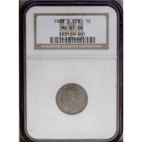 <B>1909-S VDB<1C> MS61 Brown NGC.</B></I> Boldly struck and fully detailed with few surface blemishes. Deep reddish-brown toning covers each side, with red-gold luster peeking through the rich patina at selected locations. An affordable Mint State example of one of the most famous key dates in American numismatics.