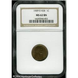 1909-S VDB 1C MS62 Brown NGC. Deeply toned in elec <B>1909-S VDB 1C MS62 Brown NGC.</B></I> Deeply toned in electric-blue, violet, and aquamarine colors. Sharply struck, and undisturbed aside from a faint mark in the left obverse field and on Lincoln's hair. Lacquer is present on selected areas of the obverse. <BR><BR><B>Important notice:</B> Heritage usually auctions material at the rate of 200-250 lots per hour. On some occasions eBay Live bid software or the Internet may not be able to keep up with the pace of the auction. We recommend placing a realistic absentee bid now as insurance to avoid disappointment. Occasionally the auctioneer may eliminate or reject an eBay Live bid, and the auctioneer may also reopen a lot after the close of the eBay live bidding (usually because we missed an audience bid), and may reject your bid even if it shows you as the winning bidder. By bidding via eBay Live, you agree that Heritage may award the lot to another bidder at its sole discretion under the circumstances described above or any other reasonable circumstances. Since eBay bids are not shown to us until we open the lot on the floor, we treat those bids just like floor bids. In most cases the floor responds before the eBay bid is presented to us, due to Internet lag time, so for consistency we have made it a policy that floor bids are always considered first over tie eBay live bids. Also please note that all Heritage lots purchased through eBay Live carry a 20% Buyer's Premium. Please make sure you read the Terms and Conditions before you bid. This lot is being auctioned in conjunction with a live floor auction by Heritage Galleries & Auctioneers. All final auction and invoice information will be supplied by Heritage Galleries & Auctioneers, and all other information should be considered preliminary. Lot:5200
