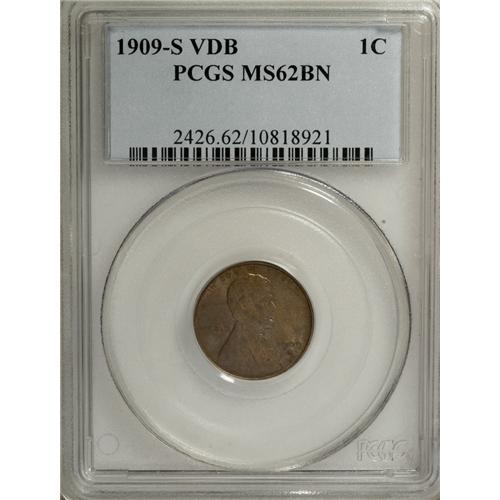 <B>1909-S VDB 1C MS62 Brown PCGS.</B></I> A bluish-brown tint is noted on both sides of this strictly original coin, with all three periods sharp in the designer's initials and a good strike throughout. Visible carbon is absent, and the appeal is considerable.<BR><BR><b>Shipping:</b> Coins & Currency (<a target="_blank" href="http://www.heritageauctions.com/common/shipping.php">view shipping information</a>)