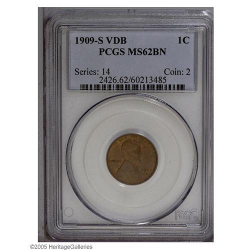 <B>1909-S VDB<1C> MS62 Brown PCGS.</B></I> Mostly even brown color with subtle hints of red, an affordable example of this popular key Lincoln Cent. Some minor spotting is noted on the reverse.