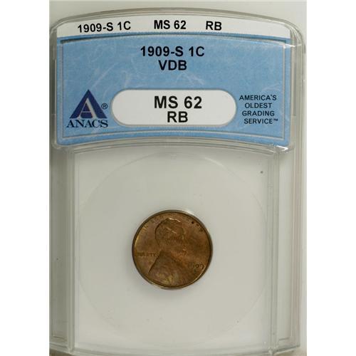 <B>1909-S VDB 1C MS62 Red and Brown ANACS.</B></I> An appealing medium red-brown example of this popular key date, attractive despite a few light flecks. The strike is sharp, with all periods in the designer's initials clear and good definition on the wheat ears. A single dark fleck in U(NITED) is noted.<BR><BR><b>Shipping:</b> Coins & Currency (<a target="_blank" href="http://www.heritageauctions.com/common/shipping.php">view shipping information</a>)