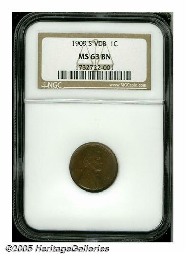 1909-S VDB 1C MS63 Brown NGC. A sharply struck, c