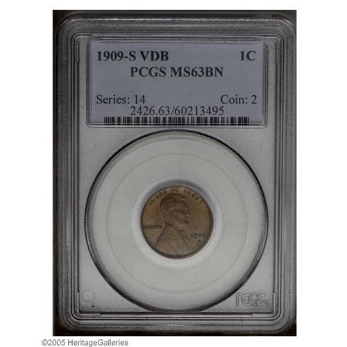 <B>1909-S VDB<1C> MS63 Brown PCGS.</B></I> Mostly light brown in color, with a blush or two of lilac toning on the reverse. Refreshingly free from marks. A whisper of verdigris is noted.