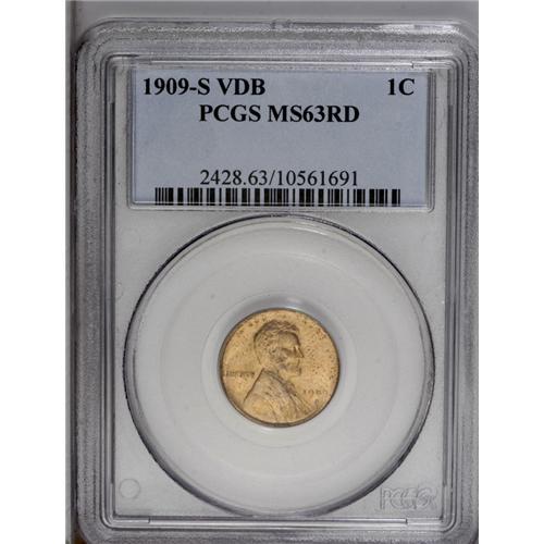 <B>1909-S VDB<1C> MS63 Red PCGS.</B></I> A bright specimen with reddish-gold surfaces with noticeable spotting on the obverse and reverse. Well struck with a few minor marks.