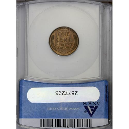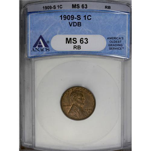 <B>1909-S VDB<1C> MS63 Red and Brown ANACS.</B></I> Original shades of gold and light tan combine in a woodgrain fashion over each side. Sharply detailed on the reverse, a little central softness is noted on the obverse. A few scattered carbon flecks are also noted.