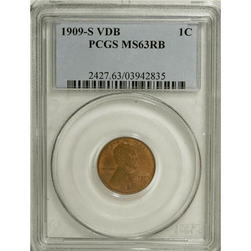 <B>1909-S VDB 1C MS63 Red and Brown PCGS.</B></I> Blended straw-gold and olive grace this satiny and lightly marked key date cent. The VDB initials are typically struck but unmistakable. Among the most famous issues in numismatics.<BR><I>Ex: Coin Galleries, 8/86, lot 2954.</B></I><BR><BR><b>Shipping:</b> Coins & Currency (<a target="_blank" href="http://www.heritageauctions.com/common/shipping.php">view shipping information</a>)