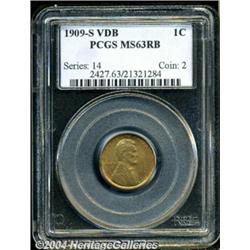 <B>1909-S VDB<1C> MS63 Red and Brown PCGS.</B></I> Original and nearly carbon-free, with faded chestnut-brown surfaces that do retain glimpses of mint color primarily at the borders. Affordable quality in a Mint State '09-S VDB. <BR><BR><B>Important notice:</B> Heritage usually auctions material at the rate of 200-250 lots per hour. On some occasions eBay Live bid software or the Internet may not be able to keep up with the pace of the auction. We recommend placing a realistic absentee bid now as insurance to avoid disappointment. Occasionally the auctioneer may eliminate or reject an eBay Live bid, and the auctioneer may also reopen a lot after the close of the eBay live bidding (usually because we missed an audience bid), and may reject your bid even if it shows you as the winning bidder. By bidding via eBay Live, you agree that Heritage may award the lot to another bidder at its sole discretion under the circumstances described above or any other reasonable circumstances. Since eBay bids are not shown to us until we open the lot on the floor, we treat those bids just like floor bids. In most cases the floor responds before the eBay bid is presented to us, due to Internet lag time, so for consistency we have made it a policy that floor bids are always considered first over tie eBay live bids. Also please note that all Heritage lots purchased through eBay Live carry a 20% Buyer's Premium. Please make sure you read the Terms and Conditions before you bid. </span></font></tr></table></td></tr></table>