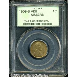 <B>1909-S VDB<1C> MS63 Red and Brown PCGS.</B></I> Attractive golden-brown "wood grain" toning overlies lustrous surfaces. A small mark is located on Lincoln's beard, and another on the lower portion of the jacket near the mint mark. A few carbon flecks are noted on the reverse, but are nicely concealed within the toning. <BR><BR><B>Important notice:</B> Heritage usually auctions material at the rate of 200-250 lots per hour. On some occasions eBay Live bid software or the Internet may not be able to keep up with the pace of the auction. We recommend placing a realistic absentee bid now as insurance to avoid disappointment. Occasionally the auctioneer may eliminate or reject an eBay Live bid, and the auctioneer may also reopen a lot after the close of the eBay live bidding (usually because we missed an audience bid), and may reject your bid even if it shows you as the winning bidder. By bidding via eBay Live, you agree that Heritage may award the lot to another bidder at its sole discretion under the circumstances described above or any other reasonable circumstances. Since eBay bids are not shown to us until we open the lot on the floor, we treat those bids just like floor bids. In most cases the floor responds before the eBay bid is presented to us, due to Internet lag time, so for consistency we have made it a policy that floor bids are always considered first over tie eBay live bids. Also please note that all Heritage lots purchased through eBay Live carry a 20% Buyer's Premium. Please make sure you read the Terms and Conditions before you bid. </span></font></tr></table></td></tr></table>