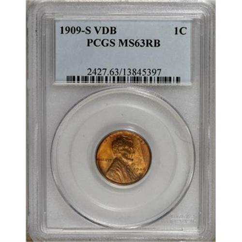 <B>1909-S VDB 1C MS63 Red and Brown PCGS.</B></I> A pleasing Select example of the most famous Lincoln cent, well-defined with minor, scattered marks. Parts of the fields remain copper-orange, while the right obverse and much of the reverse periphery have turned walnut-brown.<BR><BR><B>Coin Engraver:</B> Victor D. Brenner<BR><BR><b>Shipping:</b> Coins & Currency (<a target="_blank" href="http://www.heritageauctions.com/common/shipping.php">view shipping information</a>)