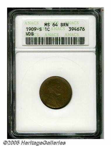 <B>1909-S VDB<1C> MS64 Brown ANACS.</B></I> This near-Gem is nicely struck with pleasing golden-brown surfaces that are virtually devoid of any significant abrasions or carbon spots. A planchet flaw (as struck) is noted on the reverse border near 7 o'clock. Key to the Lincoln set.