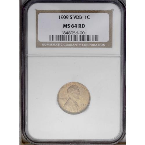 <B>1909-S VDB<1C> MS64 Red NGC.</B></I> The coin has the fine-grain texture seen on many early Lincolns, and the fullness of strike coupled with even red mint luster place this coin in the upper tier of MS64 1909-S VDB cents.<BR><I>From The Lewis (Tahoe) Collection.</B></I>