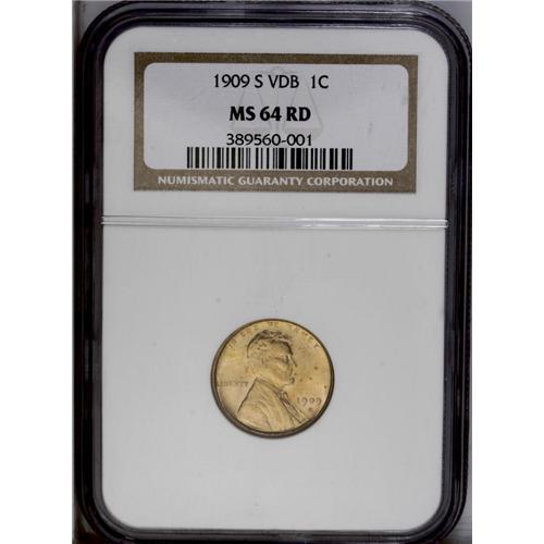 <B>1909-S VDB<1C> MS64 Red NGC.</B></I> This pleasing key issue shows richly frosted surfaces that are predominantly golden-red in color. A few whispers of crimson color are also seen over the right obverse and at the center of the reverse. This is a fully defined, conservatively graded representative of this, the most desirable first-year issue in the Lincoln cent series.