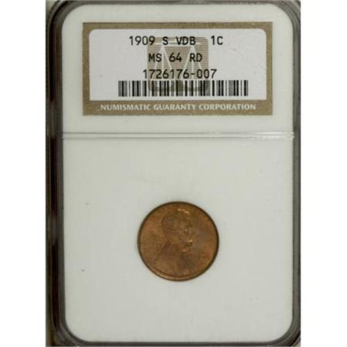 <B>1909-S VDB 1C MS64 Red NGC.</B></I> Sharply defined on each side with the strength of strike that is usually seen on this first-year issue. The luster is bright and orange-red in color on this famous and popular key-date issue. A few minor spots of dark toning are visible (with magnification) on the reverse of this near-Gem cent.<BR><BR><b>Shipping:</b> Coins & Currency (<a target="_blank" href="http://www.heritageauctions.com/common/shipping.php">view shipping information</a>)