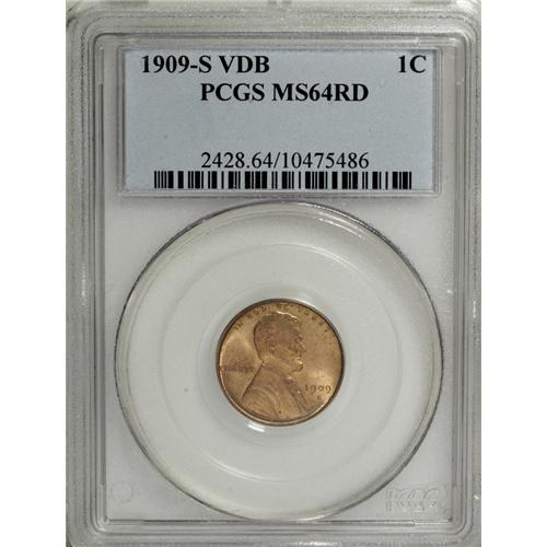 <B>1909-S VDB 1C MS64 Red PCGS.</B></I> An apricot-gold and lime near-Gem with vibrant luster and an attentive strike. The VDB initials are well brought up. Infrequent pinpoint flecks and a faint graze above the date are all that limit the grade. The low mintage and historic status of the 1909-S VDB has long made it a collector favorite.<BR><BR><b>Shipping:</b> Coin/Currency (<a target="_blank" href="http://www.heritageauctions.com/common/shipping.php">view shipping information</a>)