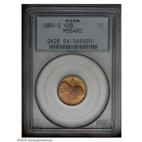 <B>1909-S VDB<1C> MS64 Red PCGS.</B></I> Lustrous deep orange and bright gold with a few tiny spots on the obverse and reverse. Very sharply struck with a pleasing, appealing appearance overall.