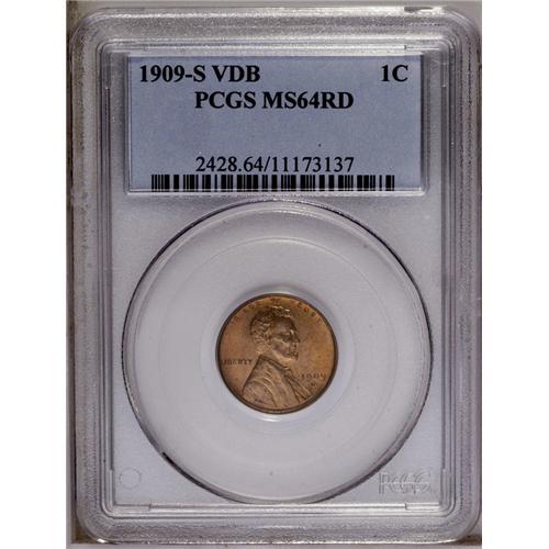 <B>1909-S VDB<1C> MS64 Red PCGS.</B></I> Mellow orange color on both sides with minor ebony specks and flakes. Like most of our sales, the present auction allows collectors a choice of several different examples representing a range of quality and value. <BR><BR><B>Important notice:</B> Heritage usually auctions material at the rate of 200-250 lots per hour. On some occasions eBay Live bid software or the Internet may not be able to keep up with the pace of the auction. We recommend placing a realistic absentee bid now as insurance to avoid disappointment. Occasionally the auctioneer may eliminate or reject an eBay Live bid, and the auctioneer may also reopen a lot after the close of the eBay live bidding (usually because we missed an audience bid), and may reject your bid even if it shows you as the winning bidder. By bidding via eBay Live, you agree that Heritage may award the lot to another bidder at its sole discretion under the circumstances described above or any other reasonable circumstances. Since eBay bids are not shown to us until we open the lot on the floor, we treat those bids just like floor bids. In most cases the floor responds before the eBay bid is presented to us, due to Internet lag time, so for consistency we have made it a policy that floor bids are always considered first over tie eBay live bids. Also please note that all Heritage lots purchased through eBay Live carry a 20% Buyer's Premium. Please make sure you read the Terms and Conditions before you bid. This lot is being auctioned in conjunction with a live floor auction by Heritage Galleries & Auctioneers. All final auction and invoice information will be supplied by Heritage Galleries & Auctioneers, and all other information should be considered preliminary. Lot:599 <BR><BR><B>Winning Notification and Billing:</B> After the FINAL session in this auction is complete, Heritage will send e-mail and snail mail invoices. This process normally takes several days. All final auction and invoice information will be supplied by Heritage Galleries & Auctioneers, and all other information should be considered preliminary. <BR><BR>This auction will be conducted on a live auction floor and over the Internet through eBay Live. If you choose to place an absentee bid, please take a moment to <font color='#0000ff'><u><a href='http://pages.ebay.com/liveauctions/help/before/laabsentee.html'>learn how eBay Live absentee bidding works</a></u></font><font color='#000000'>
