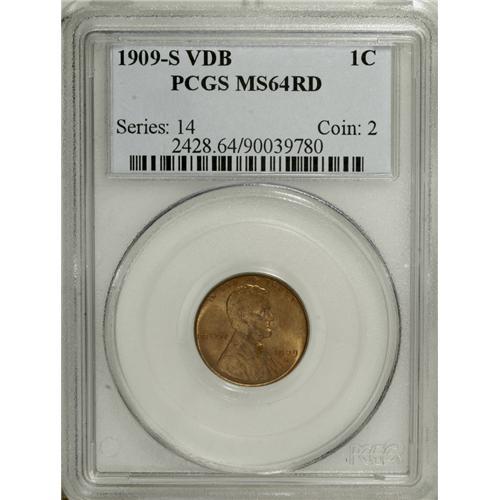 <B>1909-S VDB 1C MS64 Red PCGS.</B></I> Orange and olive-gold luster bathes this virtually unabraded near-Gem. The VDB initials are razor-sharp, as is the remainder of the legends and devices. The obverse has the look of a finer grade, while the reverse exhibits scattered pinpoint flecks.<BR><BR><b>Shipping:</b> Coin/Currency (<a target="_blank" href="http://www.heritageauctions.com/common/shipping.php">view shipping information</a>)