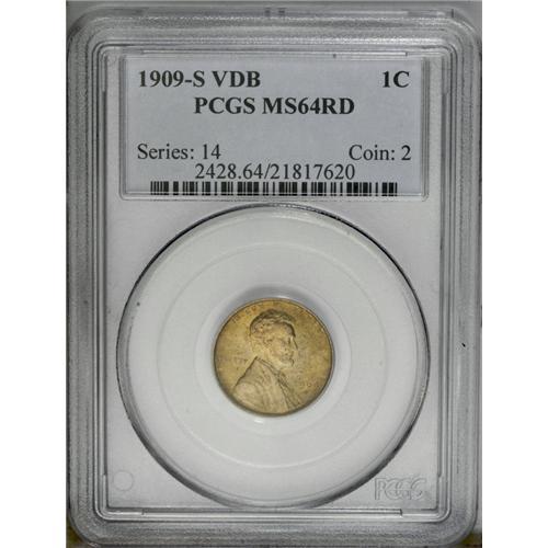 <B>1909-S VDB<1C> MS64 Red PCGS.</B></I> Well struck, highly lustrous, and seemingly mark-free. Splendid, original mint red color is still present over both sides, while some muting is also noted. The grade is derived from moderate, scattered toning spots on both sides of this otherwise premium quality near-Gem.