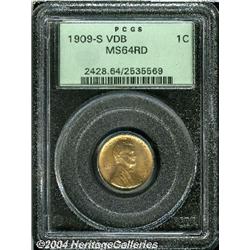 <B>1909-S VDB<1C> MS64 Red PCGS.</B></I> A sharply impressed, reddish-pink example with some noticeable spotting on each side. Perhaps the most famous, popular key-date Lincoln Cent.<BR><I>From The Rafael Romero Collection.</B></I> <BR><BR><B>Important notice:</B> Heritage usually auctions material at the rate of 200-250 lots per hour. On some occasions eBay Live bid software or the Internet may not be able to keep up with the pace of the auction. We recommend placing a realistic absentee bid now as insurance to avoid disappointment. Occasionally the auctioneer may eliminate or reject an eBay Live bid, and the auctioneer may also reopen a lot after the close of the eBay live bidding (usually because we missed an audience bid), and may reject your bid even if it shows you as the winning bidder. By bidding via eBay Live, you agree that Heritage may award the lot to another bidder at its sole discretion under the circumstances described above or any other reasonable circumstances. Since eBay bids are not shown to us until we open the lot on the floor, we treat those bids just like floor bids. In most cases the floor responds before the eBay bid is presented to us, due to Internet lag time, so for consistency we have made it a policy that floor bids are always considered first over tie eBay live bids. Also please note that all Heritage lots purchased through eBay Live carry a 20% Buyer's Premium. Please make sure you read the Terms and Conditions before you bid.