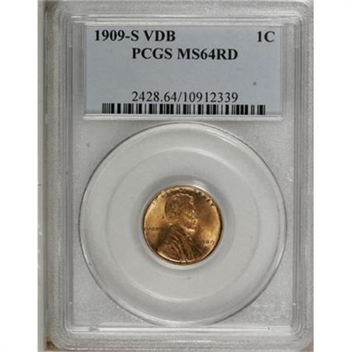 <B>1909-S VDB 1C MS64 Red PCGS.</B></I> A lovely, high-grade example of this perennially popular 20th century issue. The surfaces retain the fiery mint red color from 98 years ago. The only signs of age on this lovely piece are a few minute specks of carbon that are scattered over each side and account for the grade. Sharply defined.<BR><BR><B>Coin Engraver:</B> Victor D. Brenner<BR><BR><b>Shipping:</b> Coins & Currency (<a target="_blank" href="http://www.heritageauctions.com/common/shipping.php">view shipping information</a>)