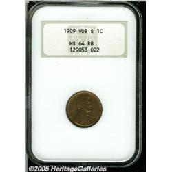 <B>1909-S VDB 1C MS64 Red and Brown NGC.</B></I> Bright mint luster underlies the overlay of light brown and pale blue patina that is seen over each side. Almost free from all traces of carbon and very close to full Gem status.