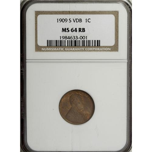 <B>1909-S VDB 1C MS64 Red and Brown NGC.</B></I> Much of the otherwise pumpkin-orange surfaces has faded to medium brown. Typically struck and appealing with minor carbon on the obverse and a fingerprint noted at the lower right reverse.<BR><BR><b>Shipping:</b> Coin/Currency (<a target="_blank" href="http://www.heritageauctions.com/common/shipping.php">view shipping information</a>)
