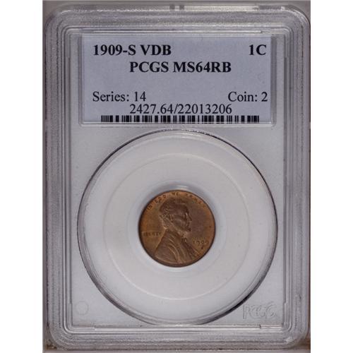 1909-S VDB 1C MS64 Red and Brown PCGS. Original, virtu 1909-S VDB[1C] MS64 Red and Brown PCGS.