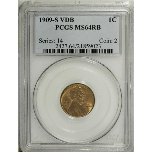 <B>1909-S VDB 1C MS64 Red and Brown PCGS.</B></I> Sharply struck throughout, there is just a bit of mellowed brown patina over each side with most of the original mint red still in evidence. Kept from the Gem category by a fine speckling of carbon over each side.<BR><BR><b>Shipping:</b> Coin/Currency (<a target="_blank" href="http://www.heritageauctions.com/common/shipping.php">view shipping information</a>)